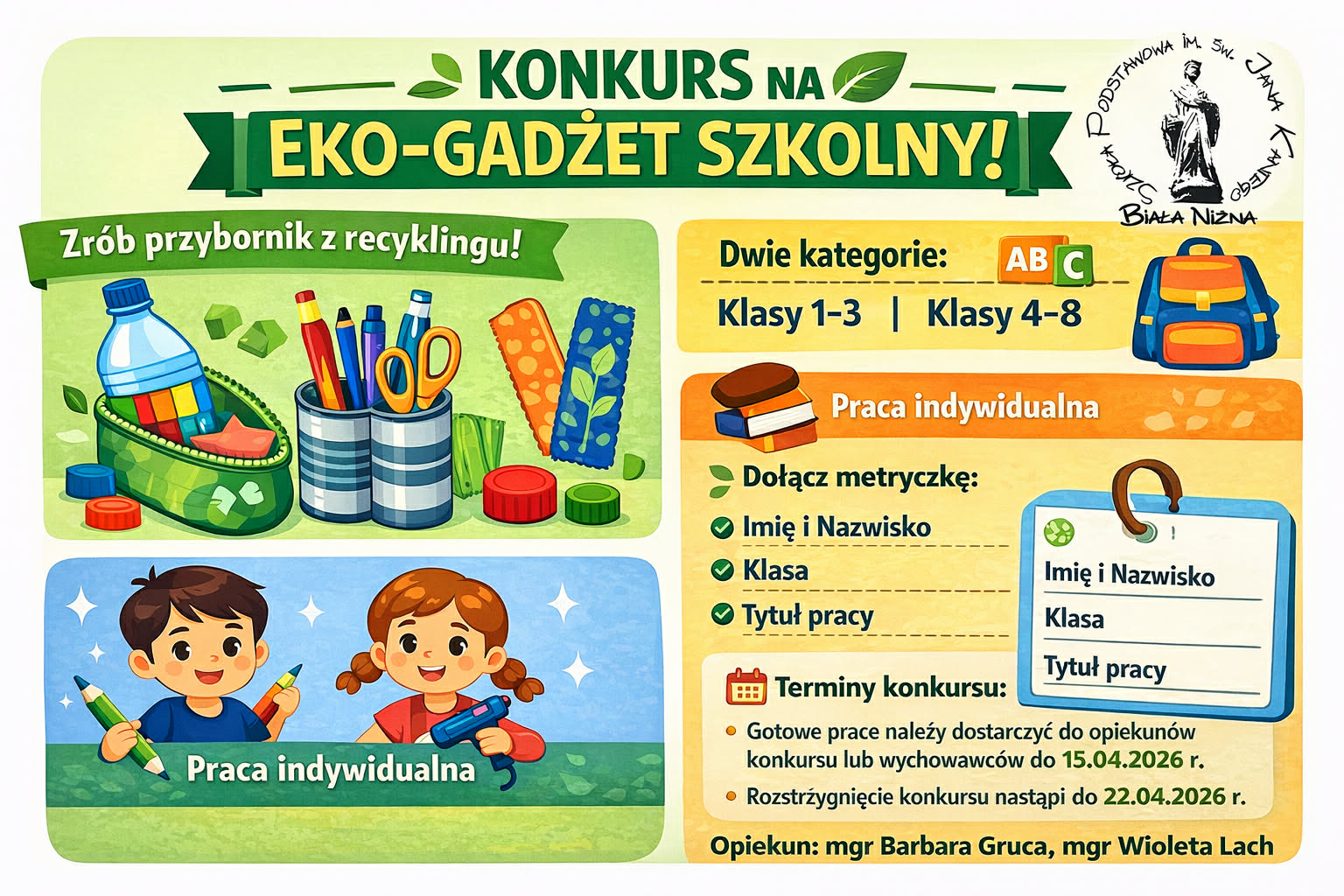 Zapraszamy wszystkich uczniów do udziału w konkursie na EKO - GADŻET SZKOLNY wykonany z surowców wtórnych.