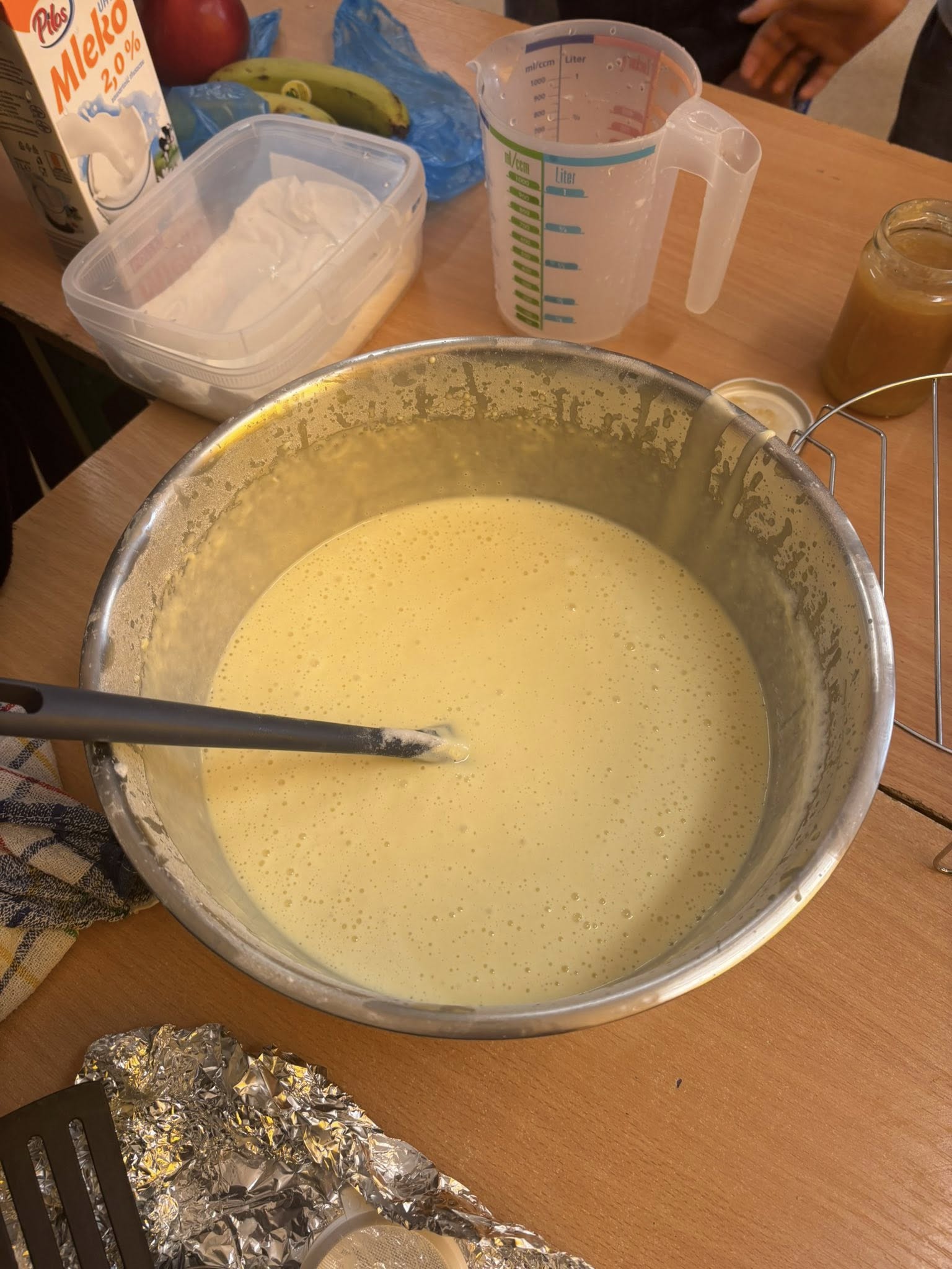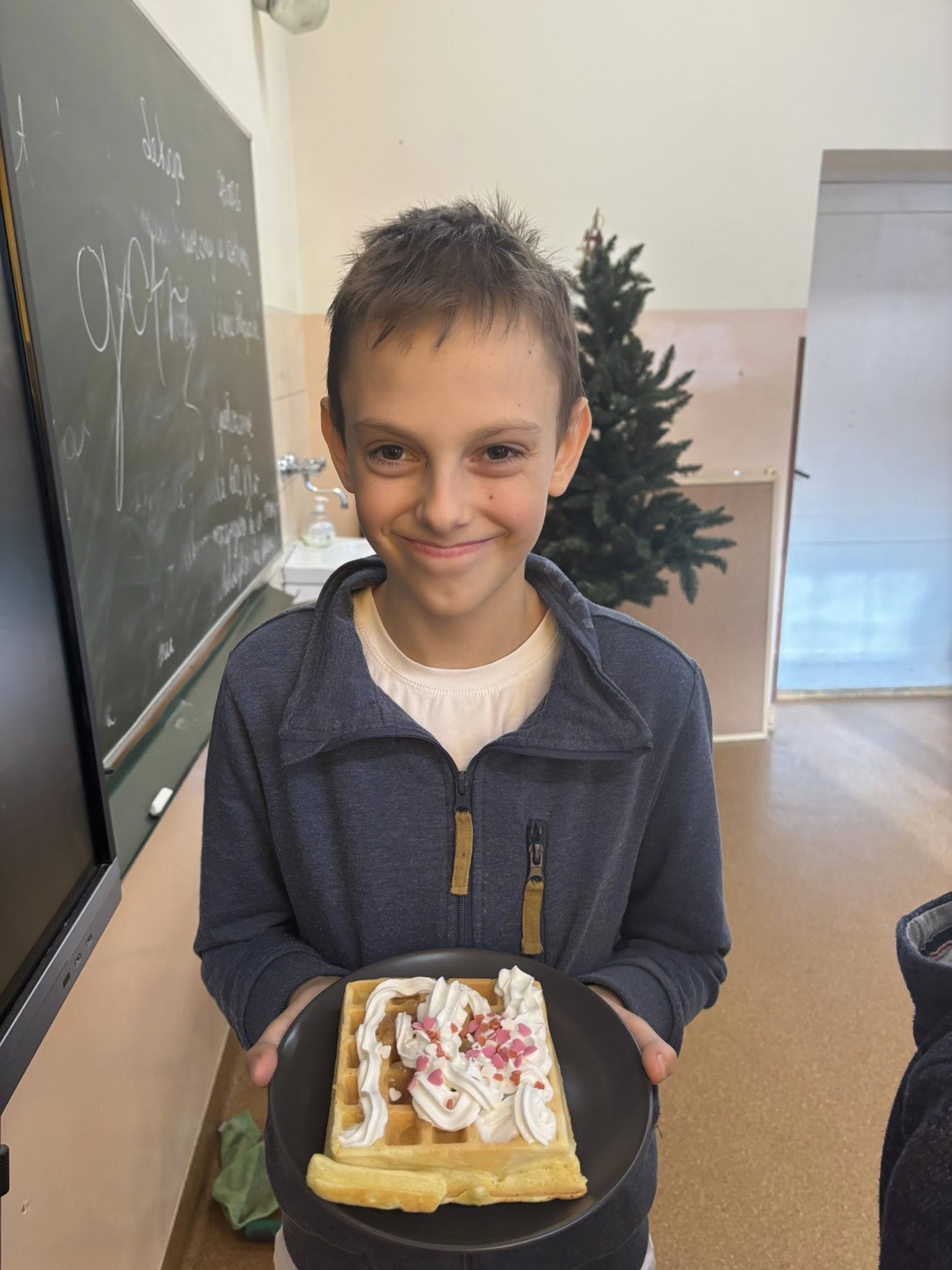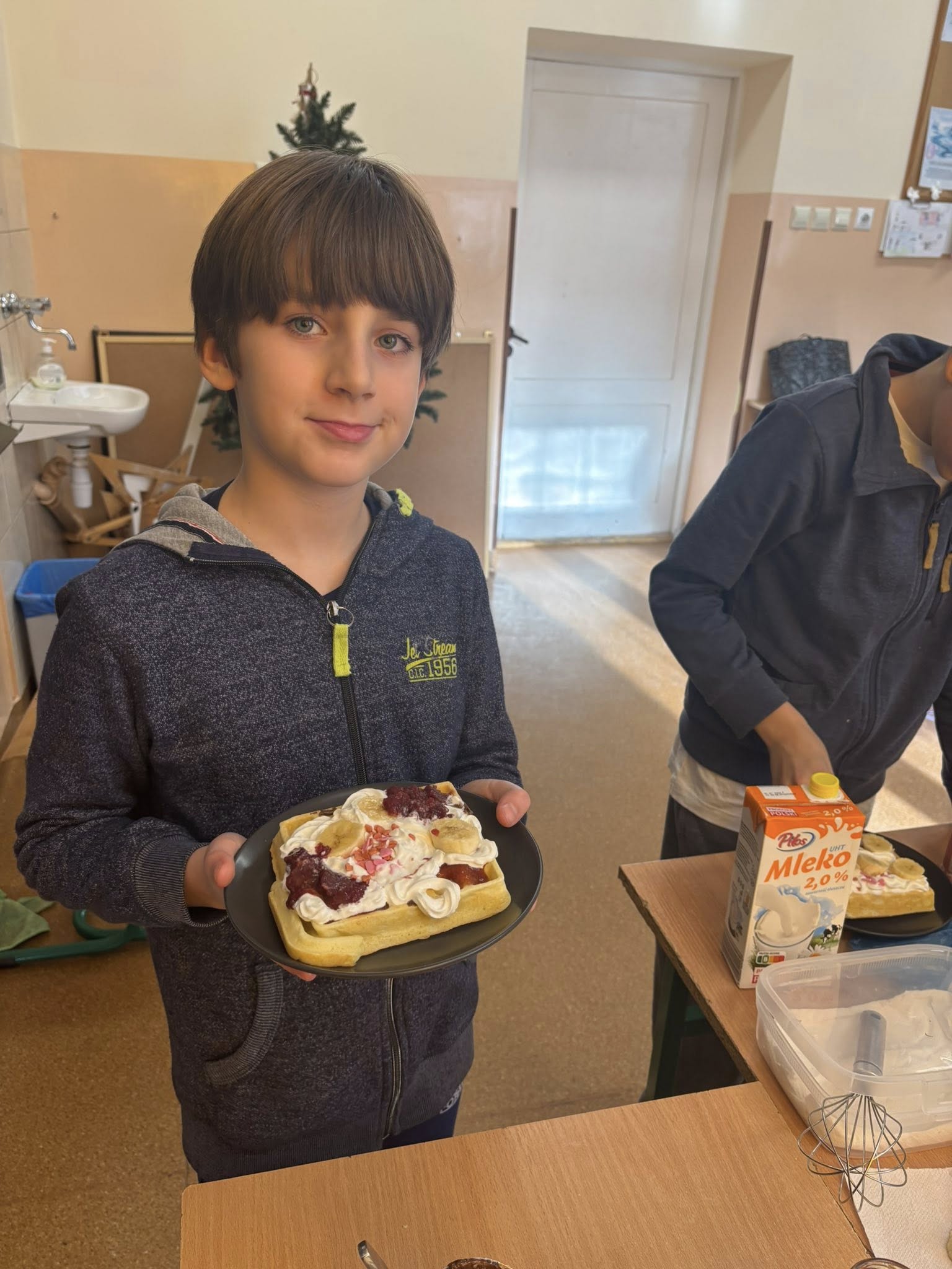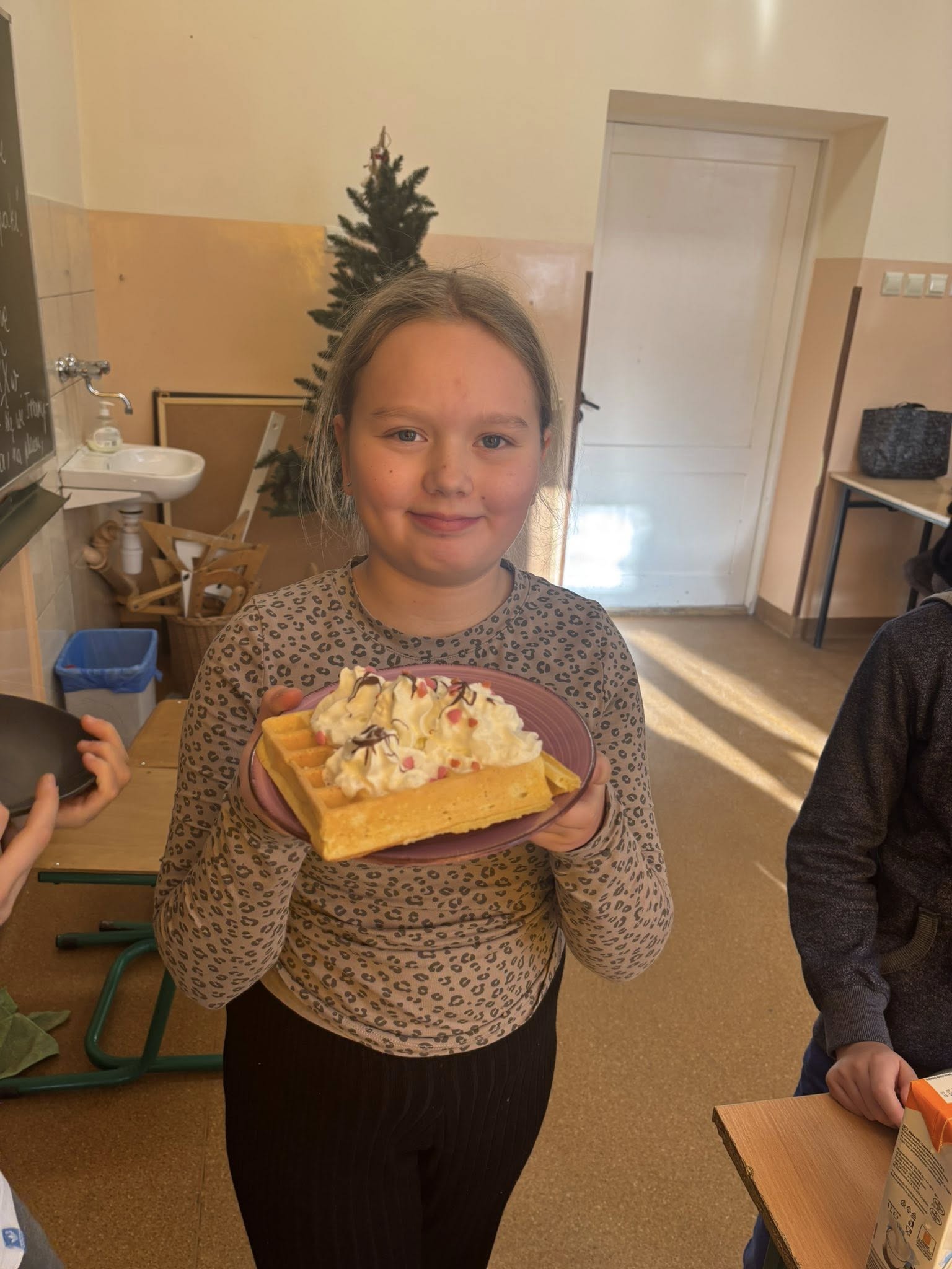 Na zajęciach dodatkowych uczniowie przygotowywali gofry. Podczas zajęć dzieci uczyły się ważyć produkty w kilogramach oraz odmierzać płyny w litrach, wykorzystując miarki kuchenne i wagę. Uczniowie z zaangażowaniem brali udział w całym procesie – od przygotowania składników po pieczenie gofrów.