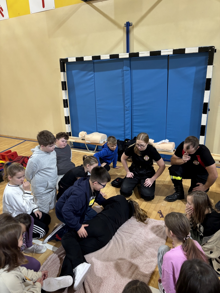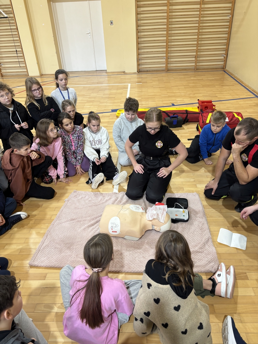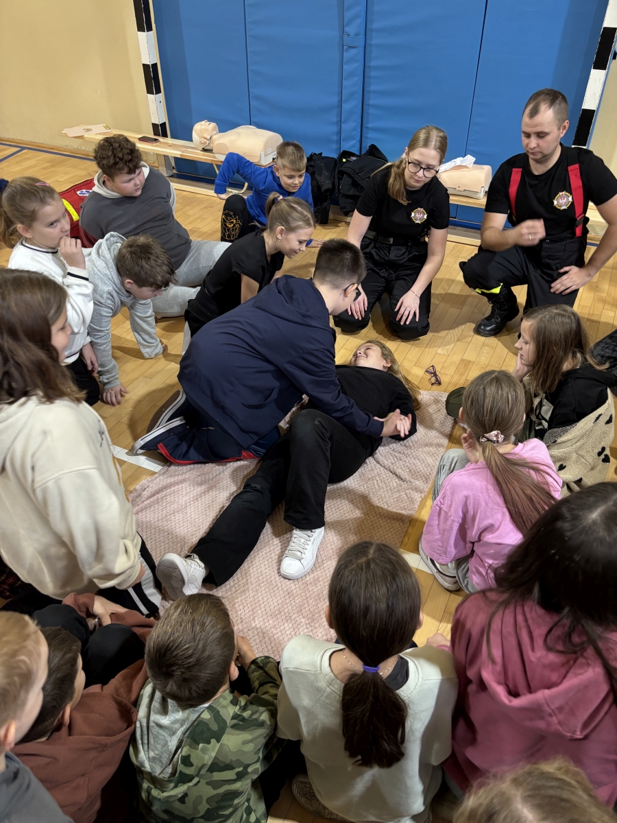 Podczas zajęć uczniowie poznali zasady udzielania pierwszej pomocy, w tym wzywania pomocy, stosowania pozycji bocznej bezpiecznej, resuscytacji krążeniowo-oddechowej, postępowania przy zadławieniach, złamaniach.
