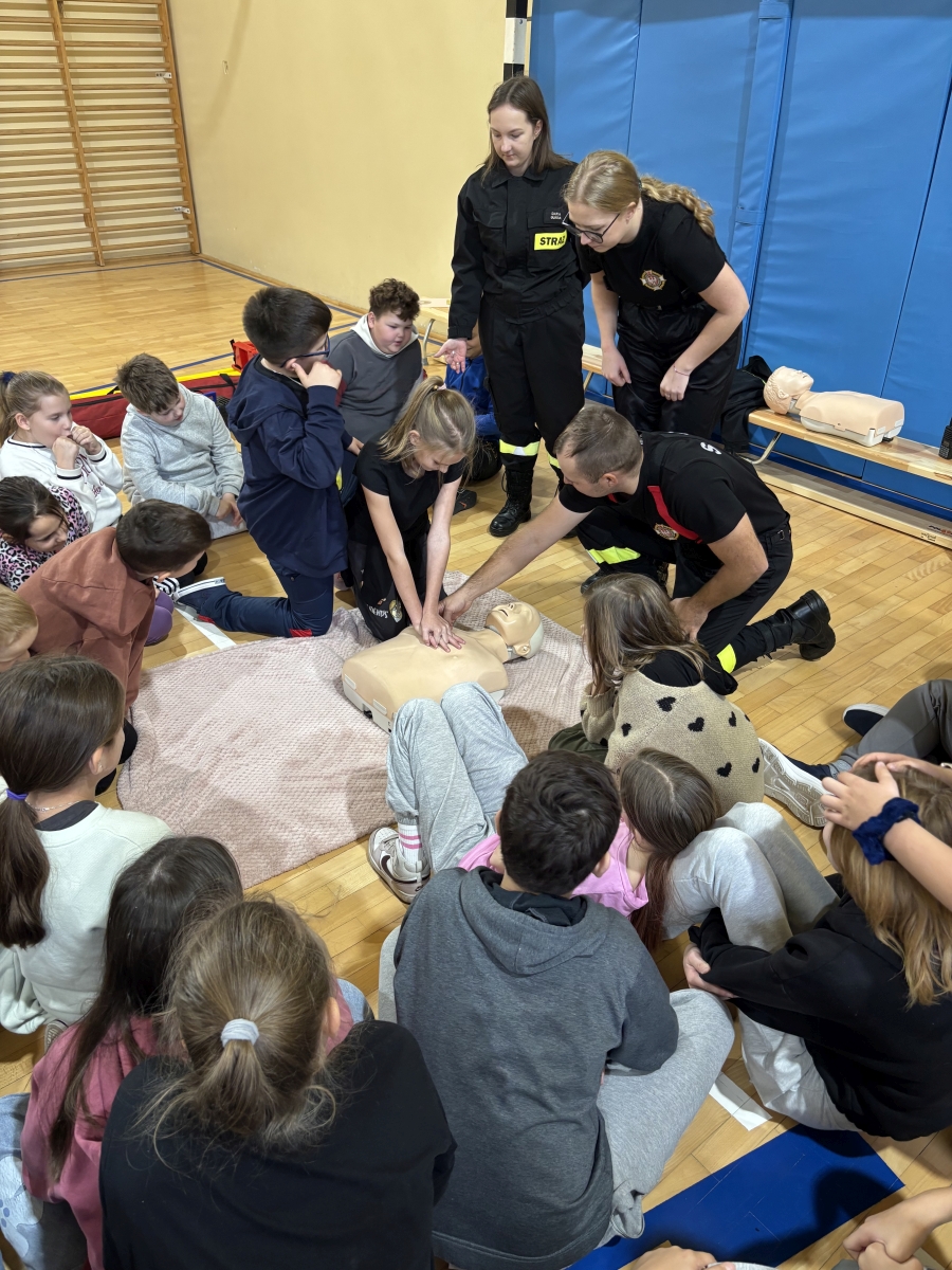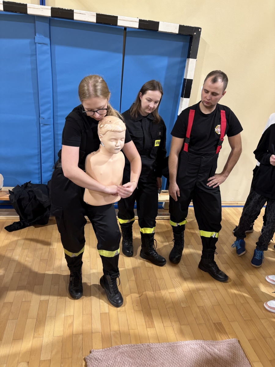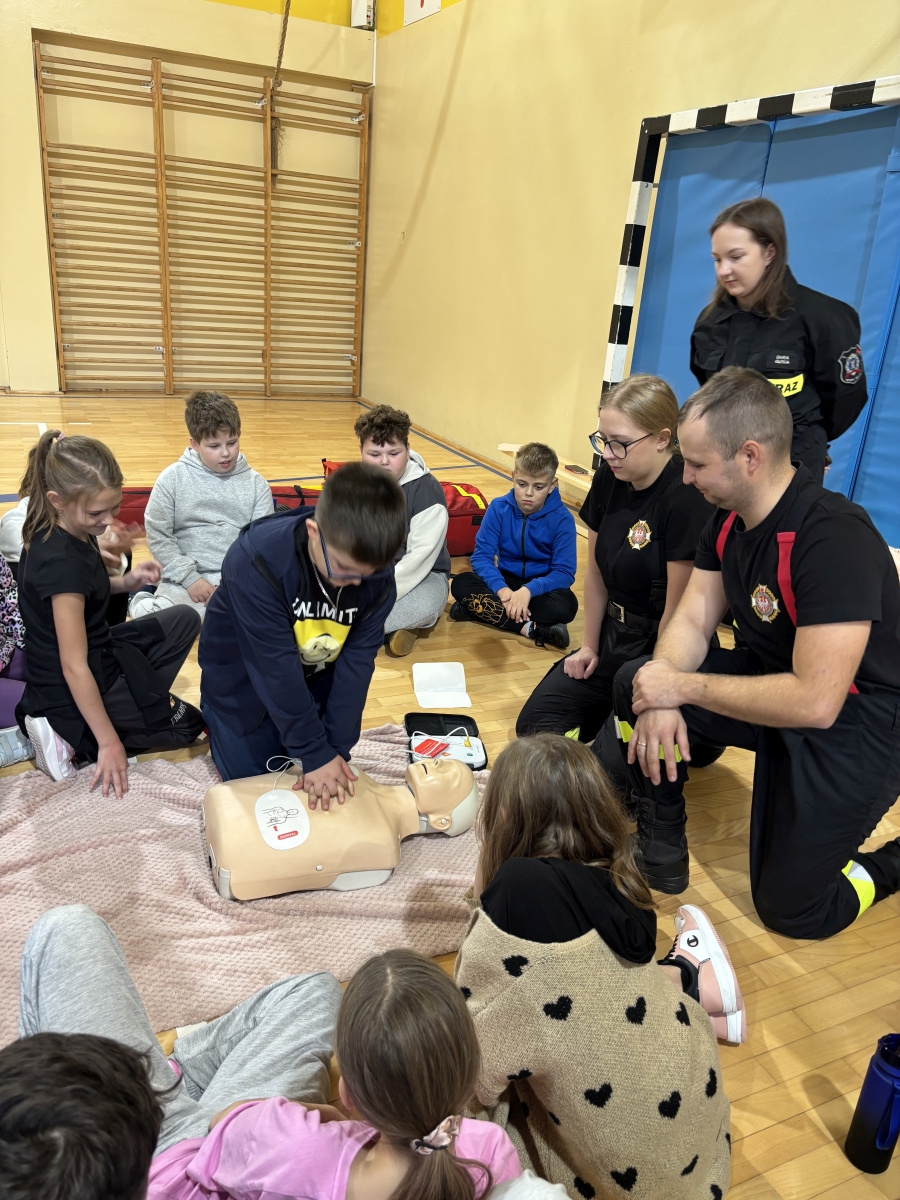 Podczas zajęć uczniowie poznali zasady udzielania pierwszej pomocy, w tym wzywania pomocy, stosowania pozycji bocznej bezpiecznej, resuscytacji krążeniowo-oddechowej, postępowania przy zadławieniach, złamaniach.
