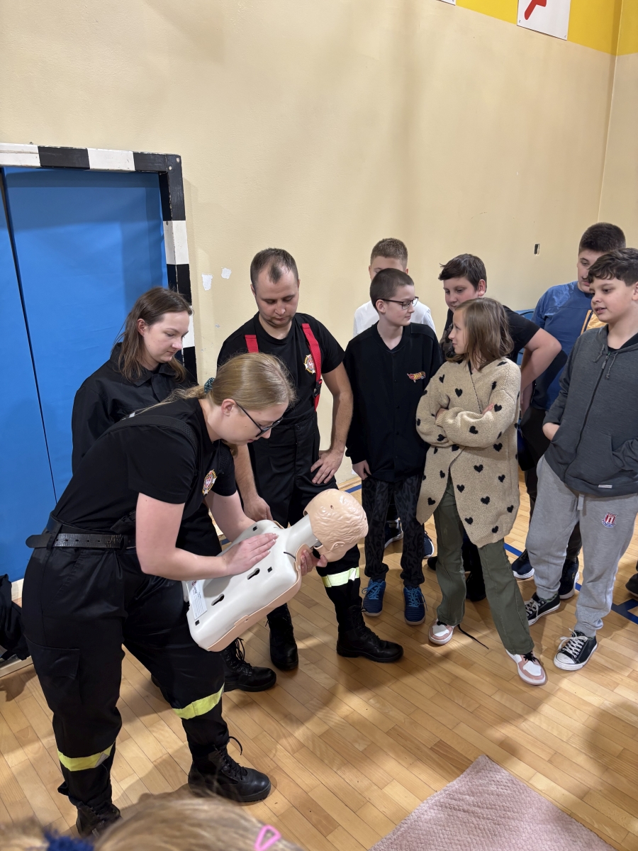 Uczniowie klasy czwartej i piątej uczestniczyli w zajęciach pierwszej pomocy przedmedycznej w ramach konkursu „Bezpieczne SĄDECKIE – Edycja 2025 SĄDECKIE”, współfinansowanego ze środków otrzymanych przez Powiat Nowosądecki do wspierania organizacji pozarządowych realizujących zadania z zakresu bezpieczeństwa na terenie powiatu nowosądeckiego.